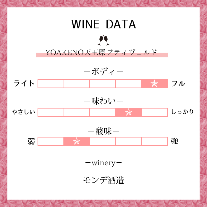 | 品種名 | プティヴェルド(山梨県北杜市明野町天王原地区産) |